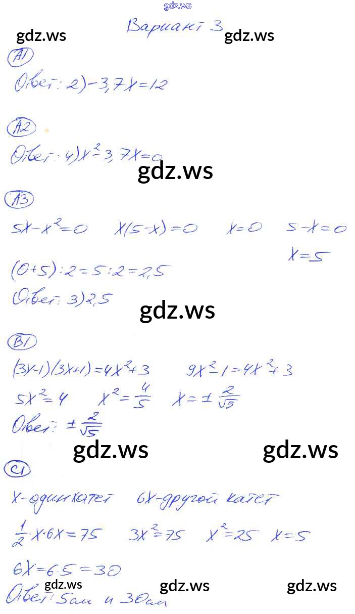 Готовый и полный ответ к СР-16. Варианты Cамостоятельные работы - Алгебре 8 класс Глазков Самостоятельные и контрольные работы УМК ФГОС