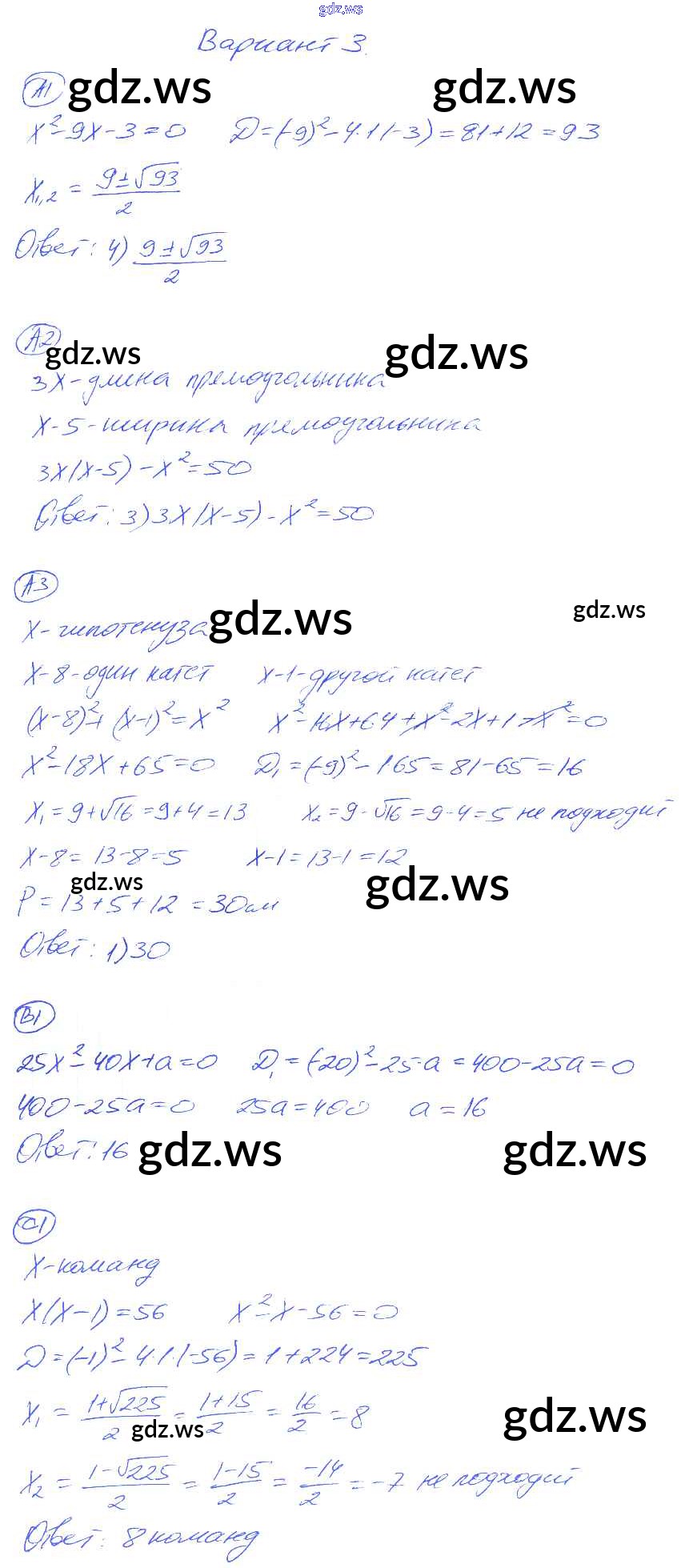Готовый ответ СР-18. Варианты Cамостоятельные работы - Алгебре 8 класс Глазков Самостоятельные и контрольные работы УМК ФГОС