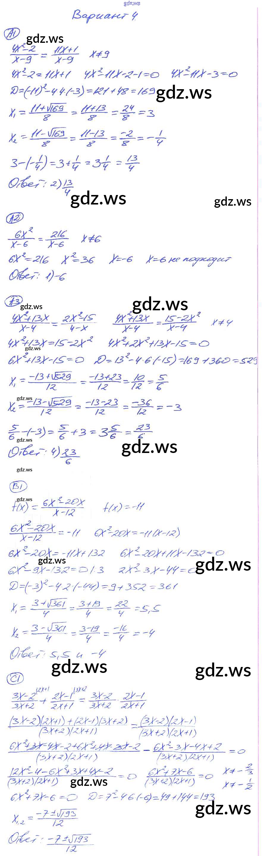 Готовый и полный ответ к СР-20. Варианты Cамостоятельные работы - Алгебре 8 класс Глазков Самостоятельные и контрольные работы УМК ФГОС