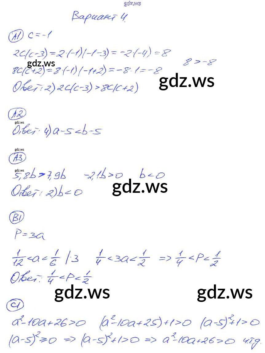 Готовый и полный ответ к СР-22. Варианты Cамостоятельные работы - Алгебре 8 класс Глазков Самостоятельные и контрольные работы УМК ФГОС