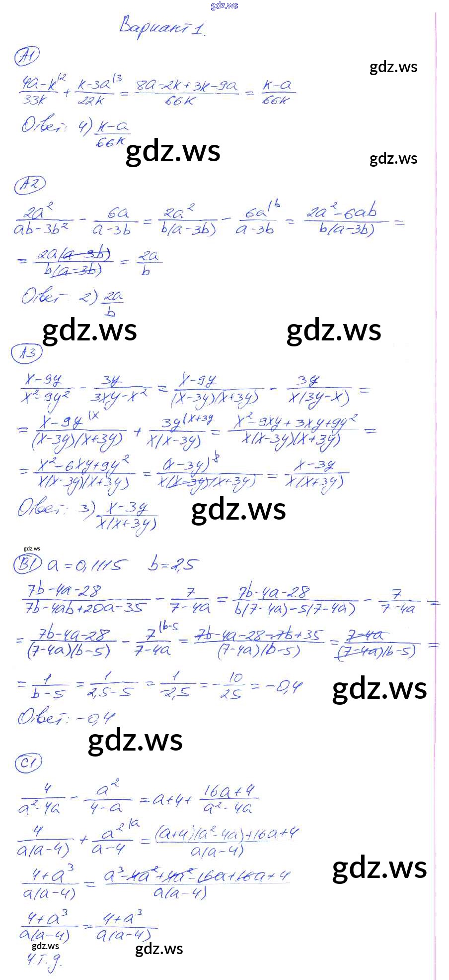 Готовый и полный ответ к СР-4. Варианты Cамостоятельные работы - Алгебре 8 класс Глазков Самостоятельные и контрольные работы УМК ФГОС