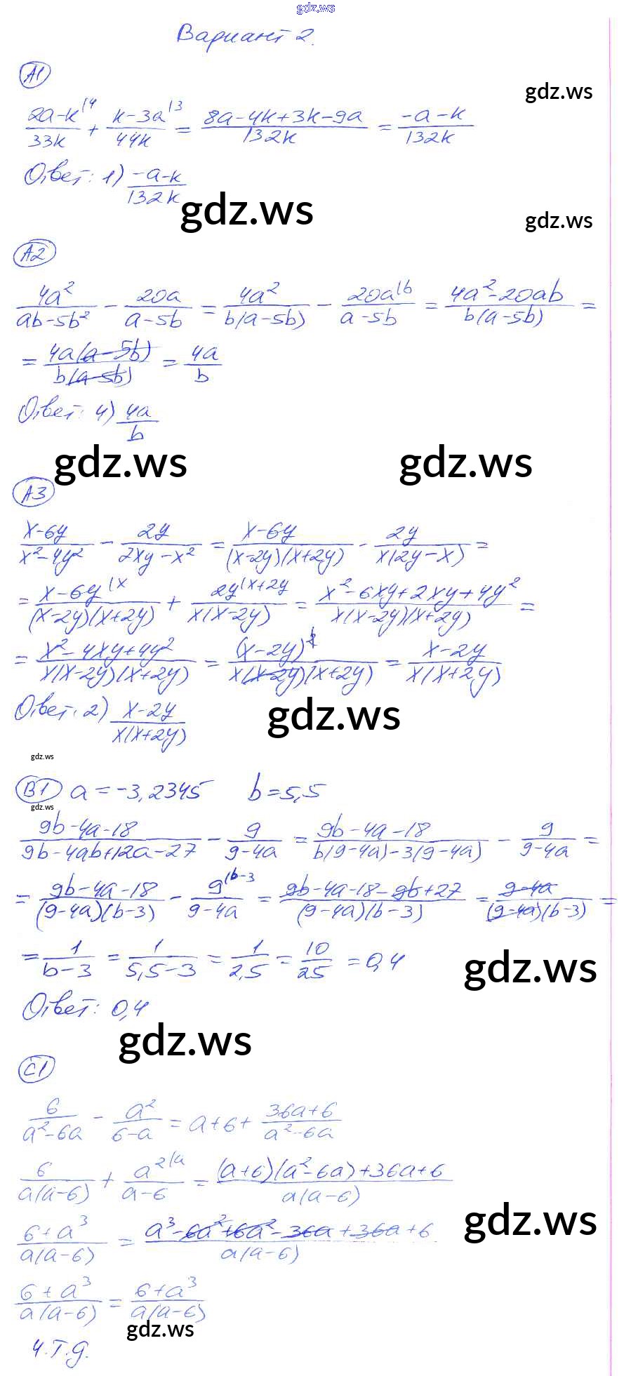 Готовый и полный ответ к СР-4. Варианты Cамостоятельные работы - Алгебре 8 класс Глазков Самостоятельные и контрольные работы УМК ФГОС
