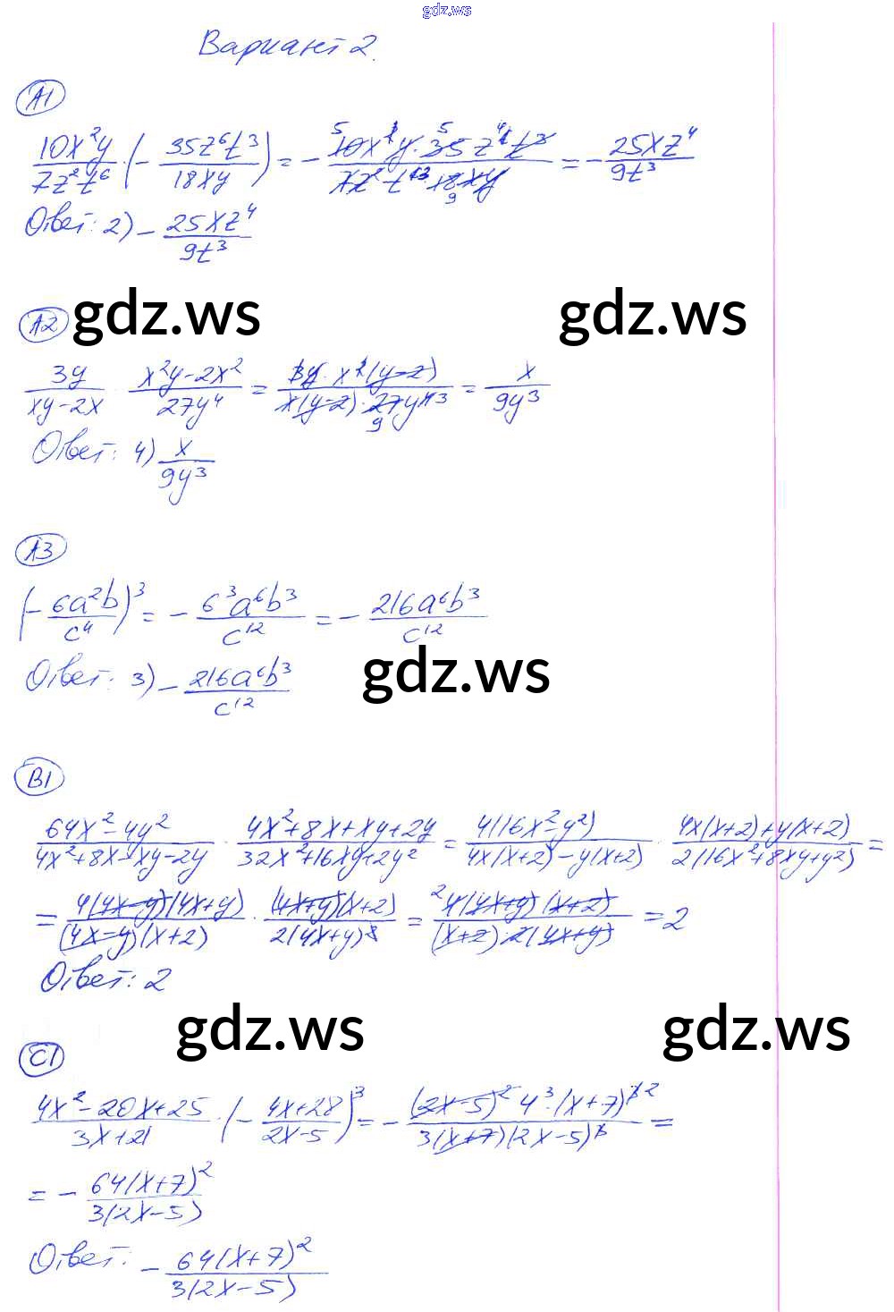 Готовый и полный ответ к СР-5. Варианты Cамостоятельные работы - Алгебре 8 класс Глазков Самостоятельные и контрольные работы УМК ФГОС