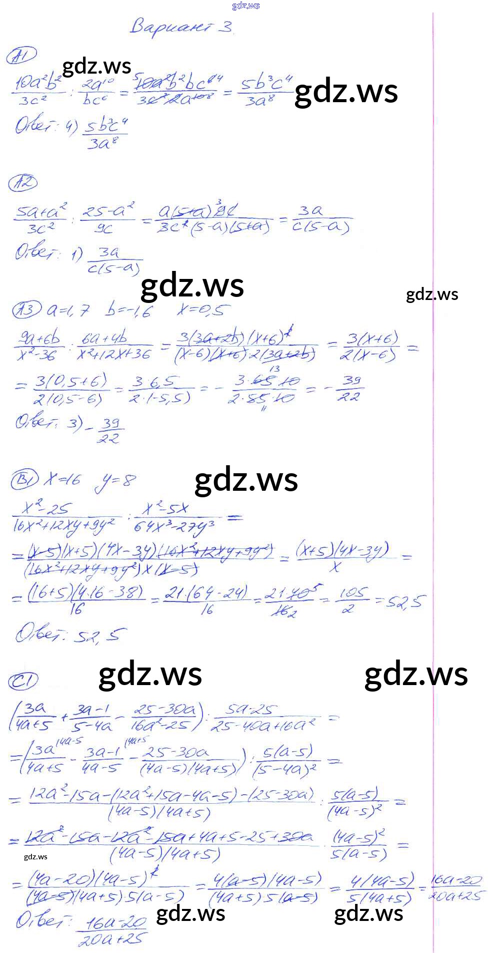Готовый и полный ответ к СР-6. Варианты Cамостоятельные работы - Алгебре 8 класс Глазков Самостоятельные и контрольные работы УМК ФГОС