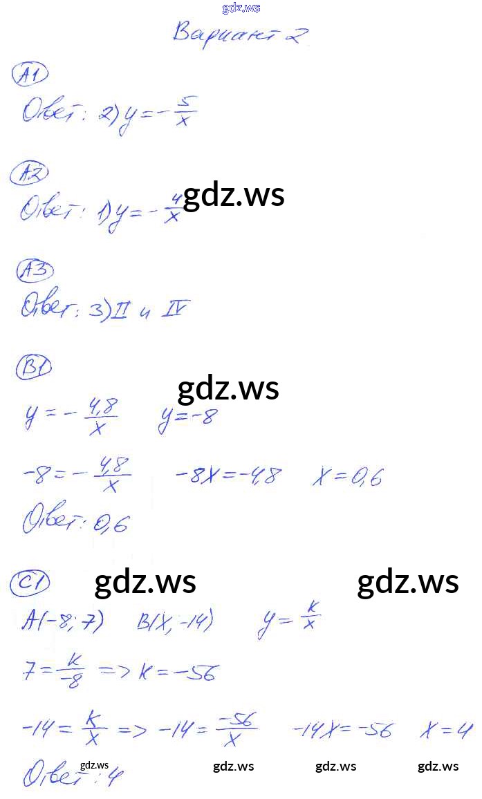 Готовый и полный ответ к СР-8. Варианты Cамостоятельные работы - Алгебре 8 класс Глазков Самостоятельные и контрольные работы УМК ФГОС