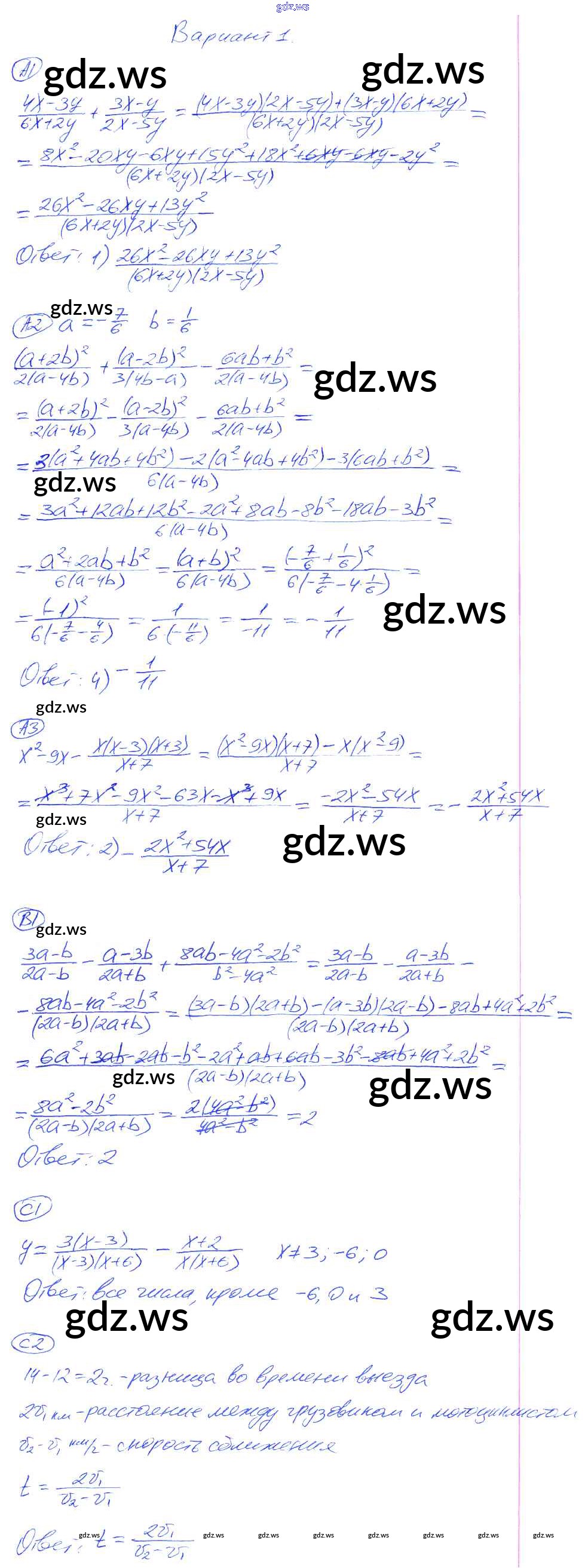 Готовый и полный ответ к КР-1. Варианты Контрольные работы - Алгебре 8 класс Глазков Самостоятельные и контрольные работы УМК ФГОС