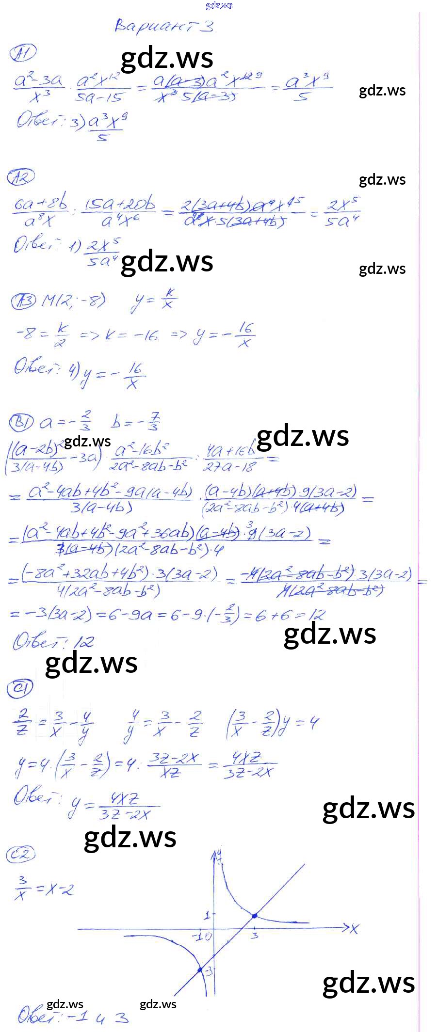 Готовый и полный ответ к КР-2. Варианты Контрольные работы - Алгебре 8 класс Глазков Самостоятельные и контрольные работы УМК ФГОС
