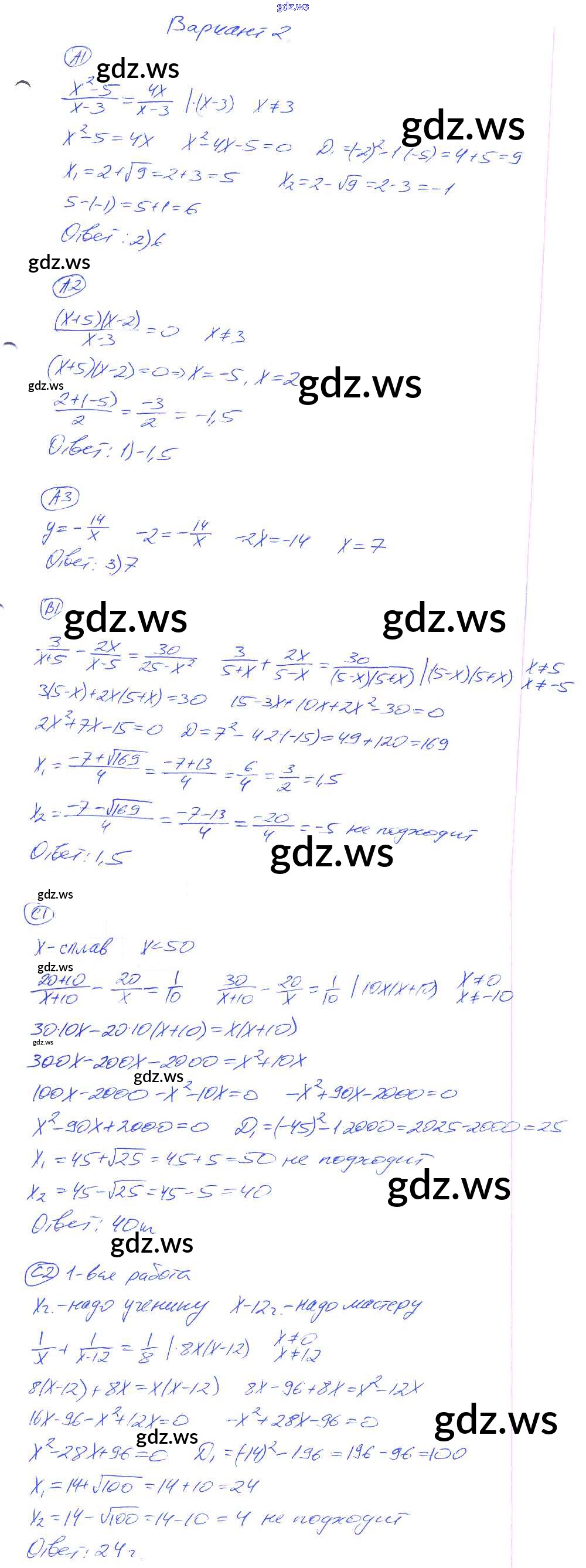 Готовый и полный ответ к КР-6. Варианты Контрольные работы - Алгебре 8 класс Глазков Самостоятельные и контрольные работы УМК ФГОС