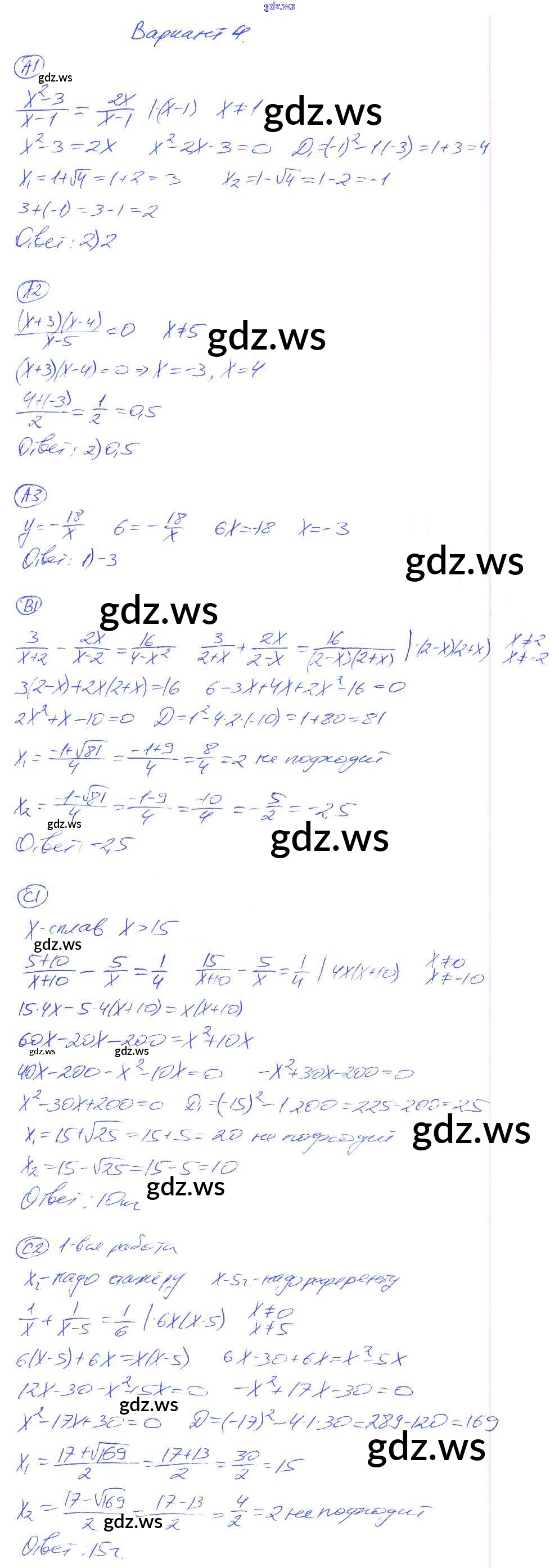 Готовый и полный ответ к КР-6. Варианты Контрольные работы - Алгебре 8 класс Глазков Самостоятельные и контрольные работы УМК ФГОС
