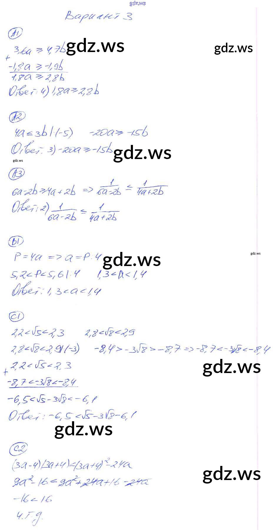 Готовый и полный ответ к КР-7. Варианты Контрольные работы - Алгебре 8 класс Глазков Самостоятельные и контрольные работы УМК ФГОС