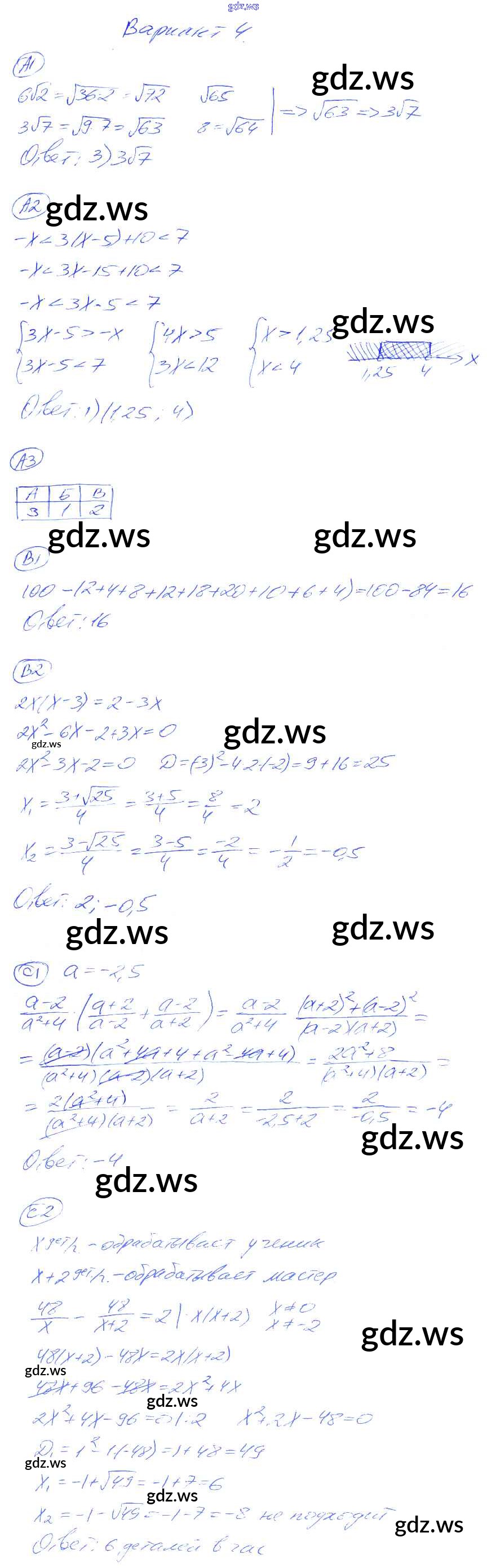 Готовый и полный ответ к КР-9. Варианты Контрольные работы - Алгебре 8 класс Глазков Самостоятельные и контрольные работы УМК ФГОС