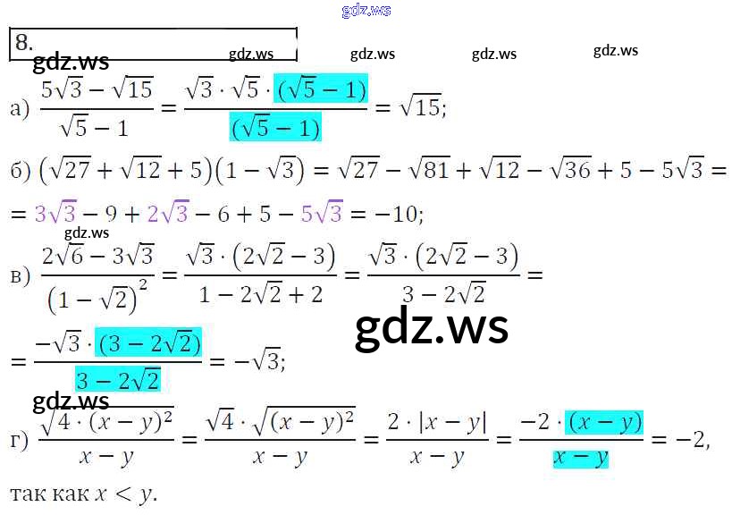 Готовый ответ Глава 3. Упражнения Проверь себя - Алгебре 8 класс Колягин Учебник ФГОС