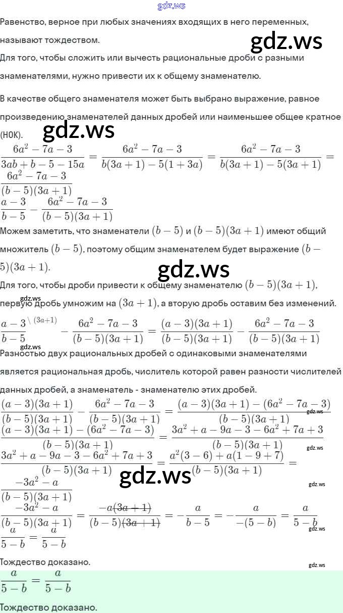 §3. Сложение и вычитание рациональных дробей с одинаковыми знаменателями