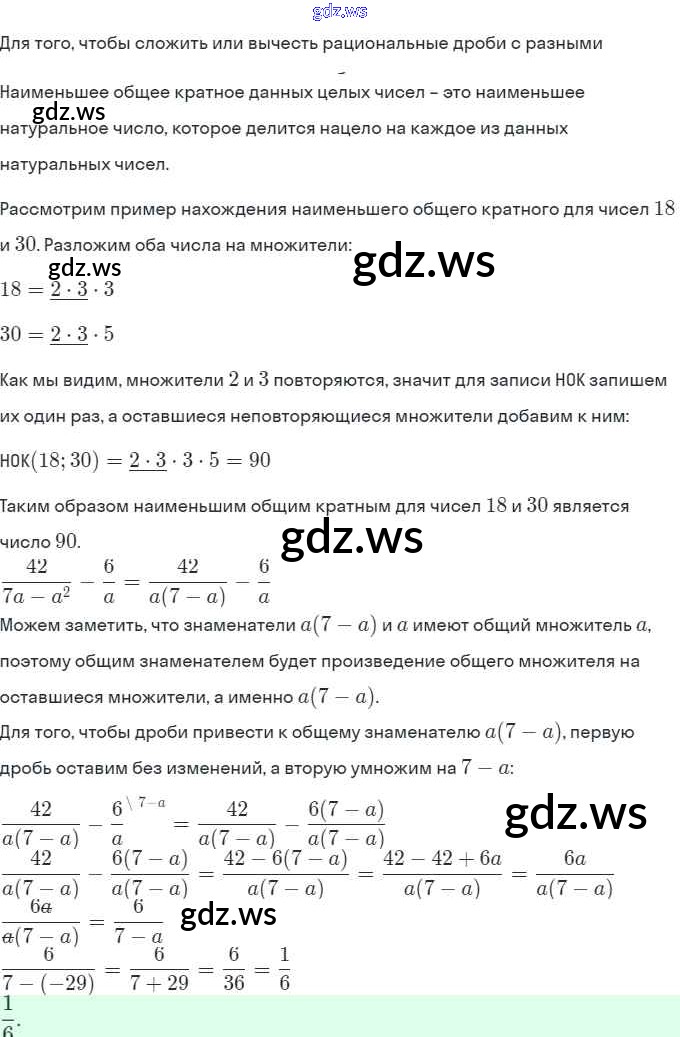 Готовый ответ §4. Сложение и вычитание рациональных дробей с разными знаменателями  - Алгебре 8 класс Мерзляк Рабочая тетрадь  Алгоритм успеха ФГОС