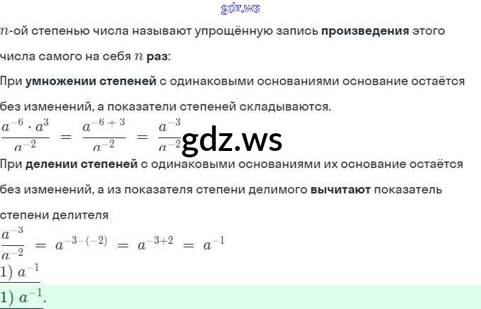 Готовый ответ §9. Свойства степени с целым показателем  - Алгебре 8 класс Мерзляк Рабочая тетрадь  Алгоритм успеха ФГОС