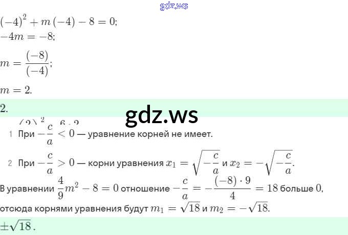 Готовый и полный ответ к §19. Квадратные уравнения. Решение неполных квадратных уравнений - Алгебре 8 класс Мерзляк Рабочая тетрадь Алгоритм успеха ФГОС