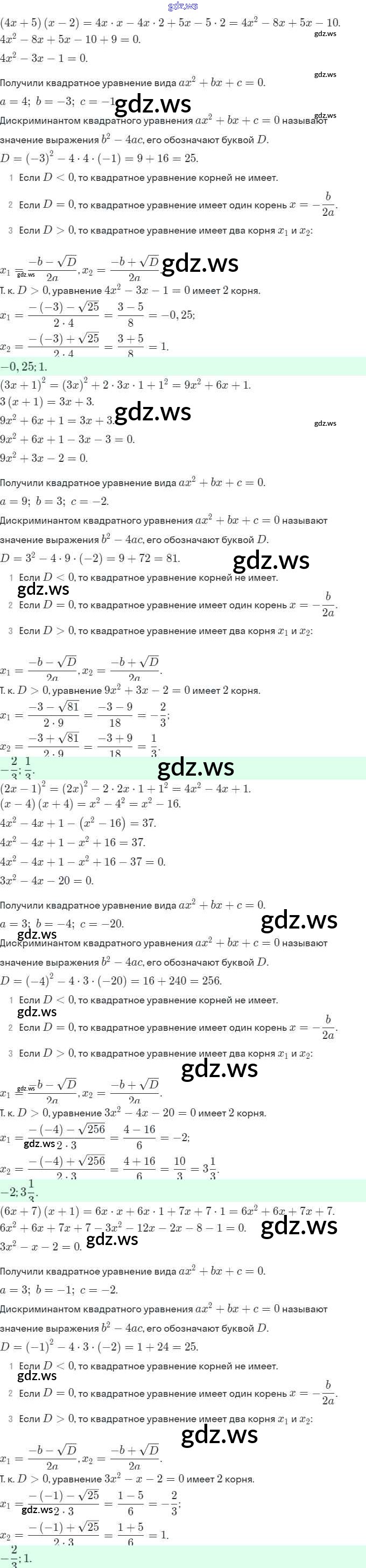 Готовый ответ §20. Формула корней квадратного уравнения - Алгебре 8 класс Мерзляк Рабочая тетрадь Алгоритм успеха ФГОС