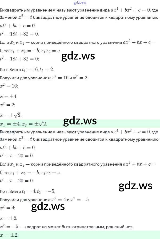 Готовый и полный ответ к §23. Решение уравнений, сводящихся к квадратным уравнениям - Алгебре 8 класс Мерзляк Рабочая тетрадь Алгоритм успеха ФГОС