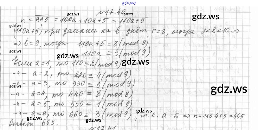 Готовый и полный ответ к §17. деление с остатком Глава 3. Основы теории делимости - Алгебре 8 класс Мерзляк Учебник Углубленный уровень Алгоритм успеха ФГОС