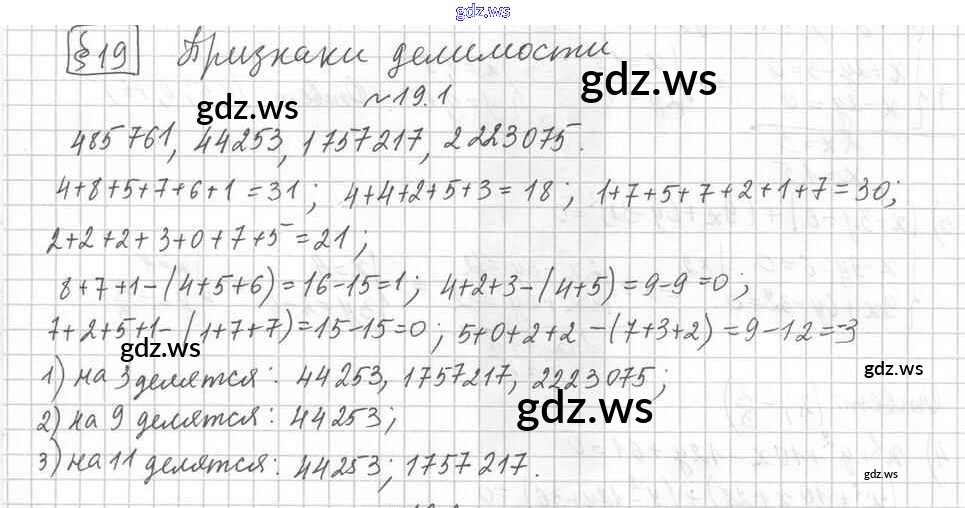 Готовый и полный ответ к §19. Признаки делимости Глава 3. Основы теории делимости - Алгебре 8 класс Мерзляк Учебник Углубленный уровень Алгоритм успеха ФГОС