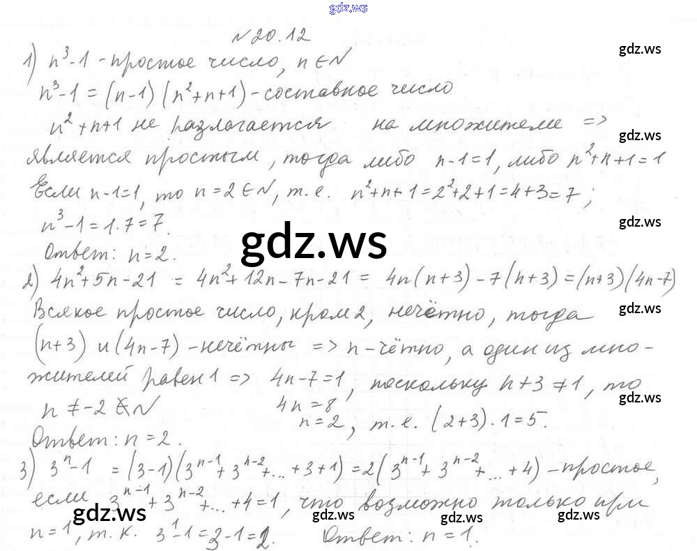 Готовый и полный ответ к §20. Простые и составные числа Глава 3. Основы теории делимости - Алгебре 8 класс Мерзляк Учебник Углубленный уровень Алгоритм успеха ФГОС