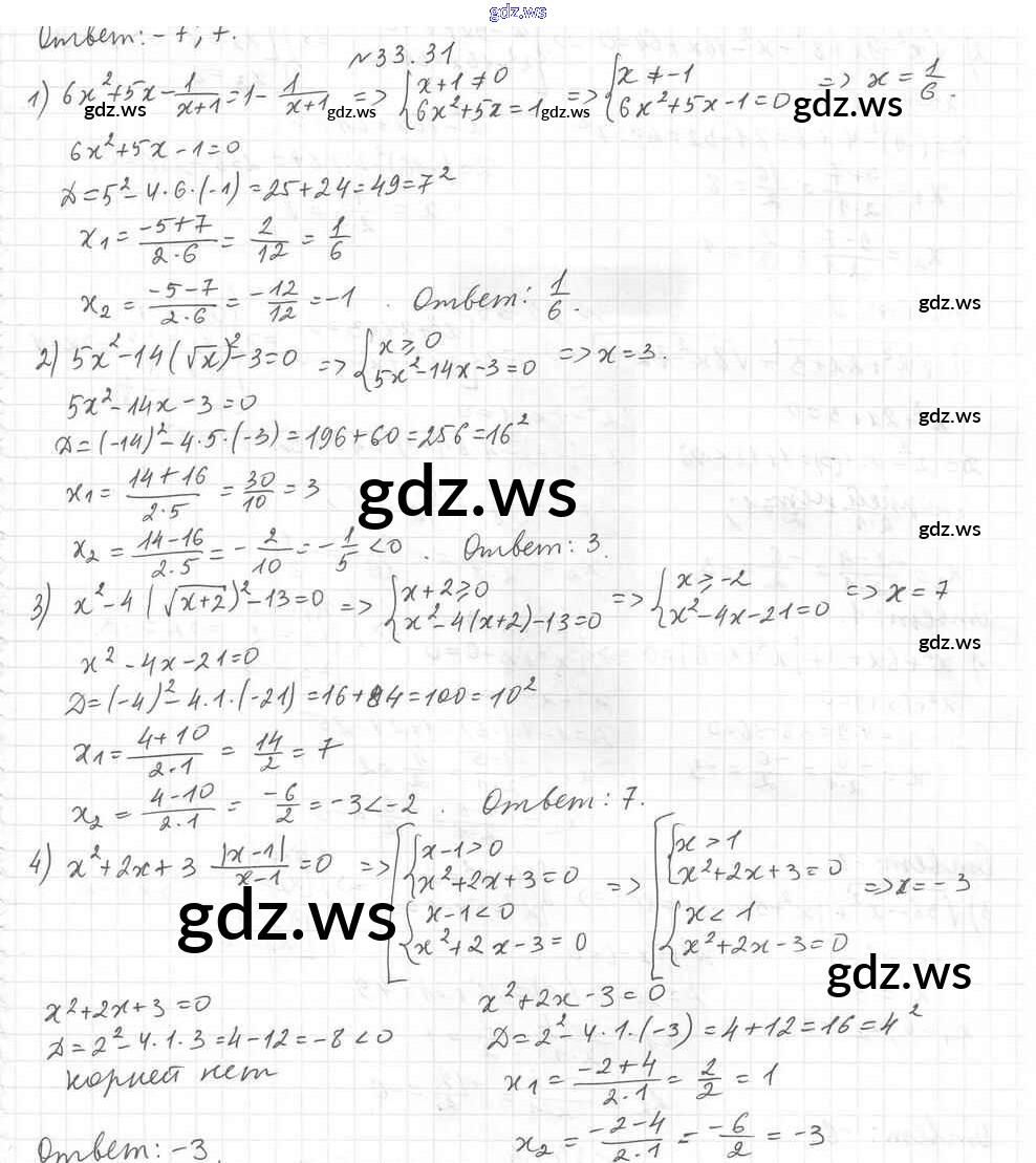 Готовый и полный ответ к §33. Формула корней квадратного уравнения Глава 6. Квадратные уравнения - Алгебре 8 класс Мерзляк Учебник Углубленный уровень Алгоритм успеха ФГОС