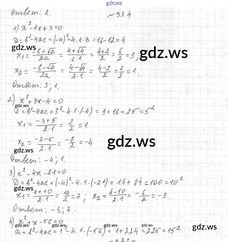 Готовый и полный ответ к §33. Формула корней квадратного уравнения Глава 6. Квадратные уравнения - Алгебре 8 класс Мерзляк Учебник Углубленный уровень Алгоритм успеха ФГОС