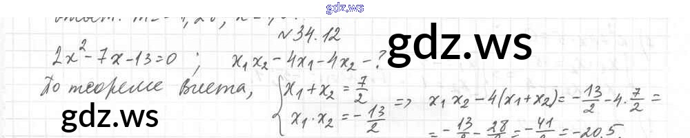Готовый и полный ответ к §34. Теорема Виета Глава 6. Квадратные уравнения - Алгебре 8 класс Мерзляк Учебник Углубленный уровень Алгоритм успеха ФГОС