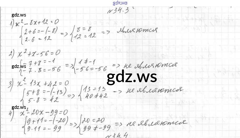 Готовый и полный ответ к §34. Теорема Виета Глава 6. Квадратные уравнения - Алгебре 8 класс Мерзляк Учебник Углубленный уровень Алгоритм успеха ФГОС