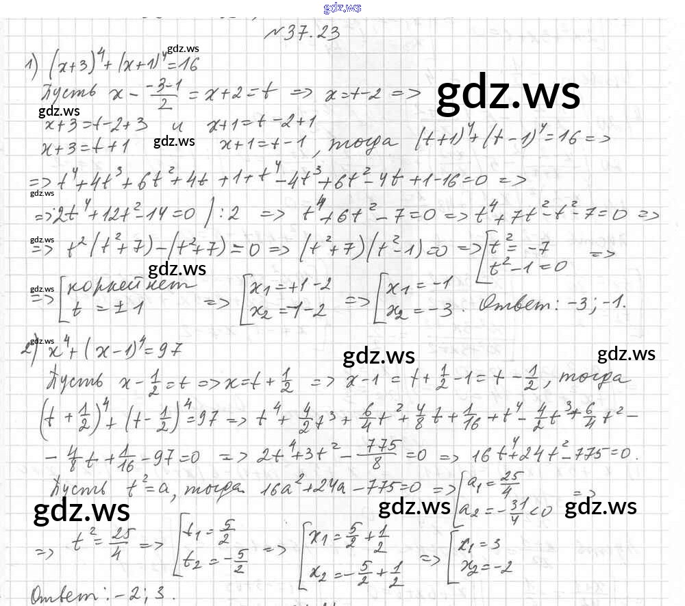 Готовый и полный ответ к §37. Решение уравнений методом замены переменной Глава 6. Квадратные уравнения - Алгебре 8 класс Мерзляк Учебник Углубленный уровень Алгоритм успеха ФГОС