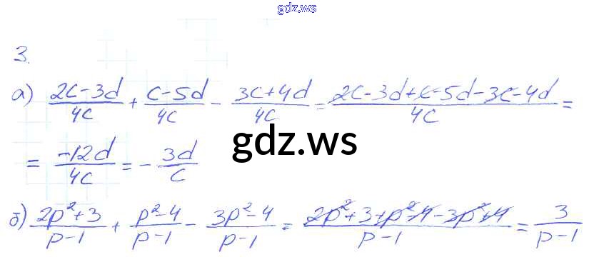 Готовый ответ §3. Сложение и вычитание дробей с одинаковыми знаменателями - Алгебре 8 класс Миндюк Рабочая тетрадь УМК ФГОС
