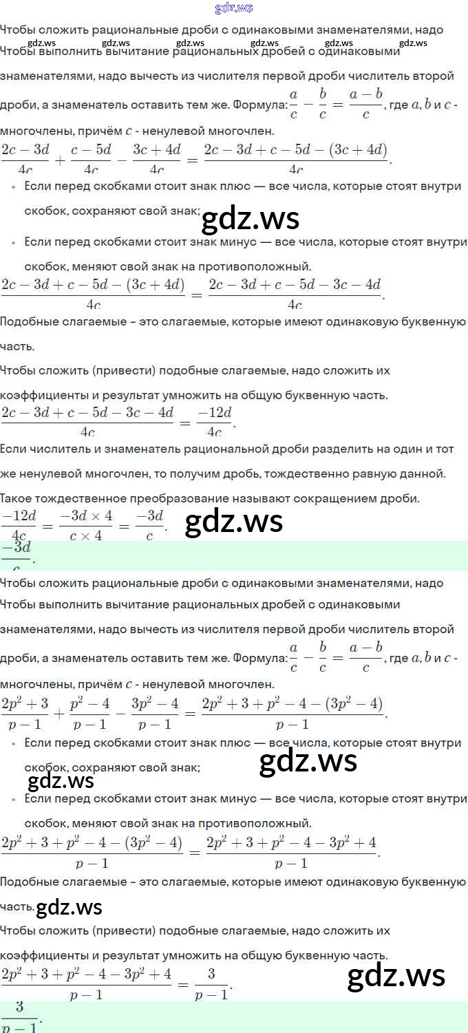 Готовый и полный ответ к §3. Сложение и вычитание дробей с одинаковыми знаменателями - Алгебре 8 класс Миндюк Рабочая тетрадь УМК ФГОС