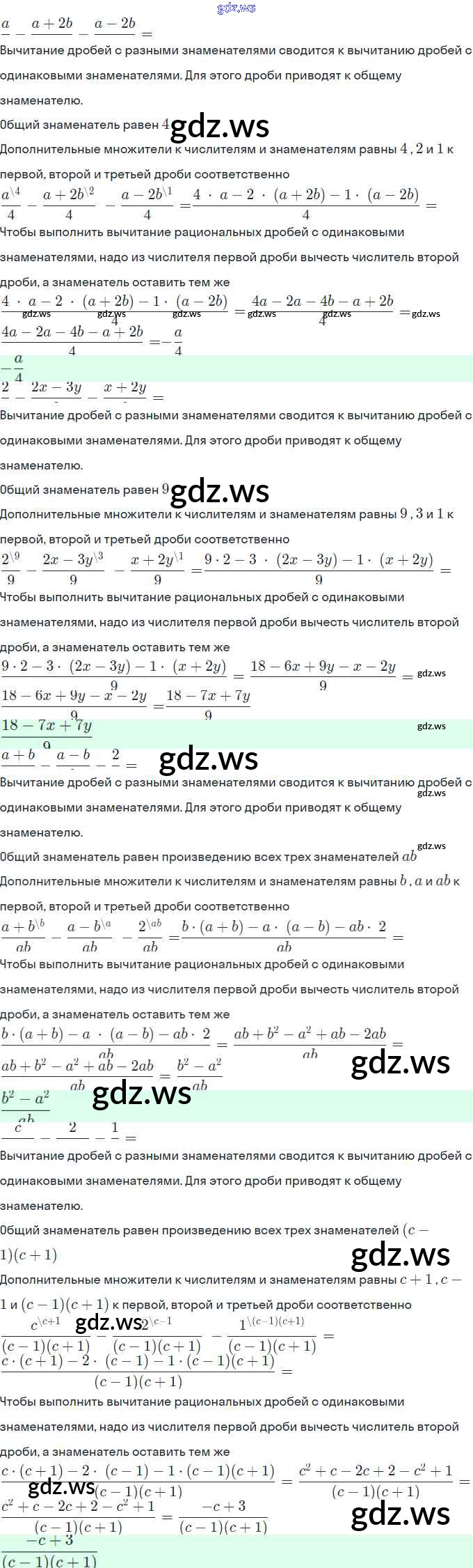 Готовый и полный ответ к §4. Сложение и вычитание дробей с разными знаменателями - Алгебре 8 класс Миндюк Рабочая тетрадь УМК ФГОС