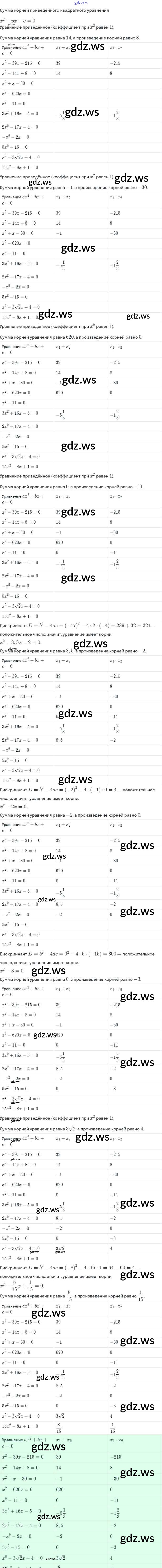 Готовый ответ §22. Теорема Виета - Алгебре 8 класс Миндюк Рабочая тетрадь УМК ФГОС