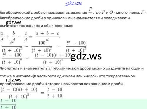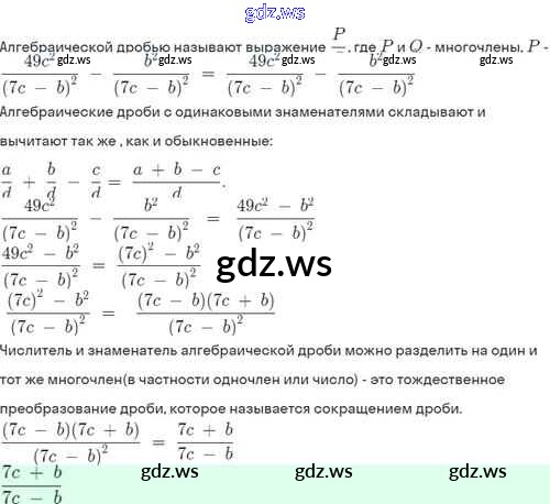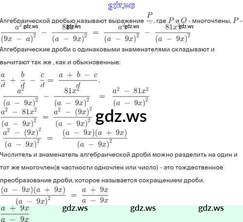 Готовый и полный ответ к §3. Сложение и вычитание алгебраических дробей с одинаковыми знаменателями - Алгебре 8 класс Мордкович Задачник Базовый уровень ФГОС