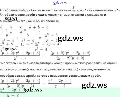 Готовый и полный ответ к §3. Сложение и вычитание алгебраических дробей с одинаковыми знаменателями - Алгебре 8 класс Мордкович Задачник Базовый уровень ФГОС