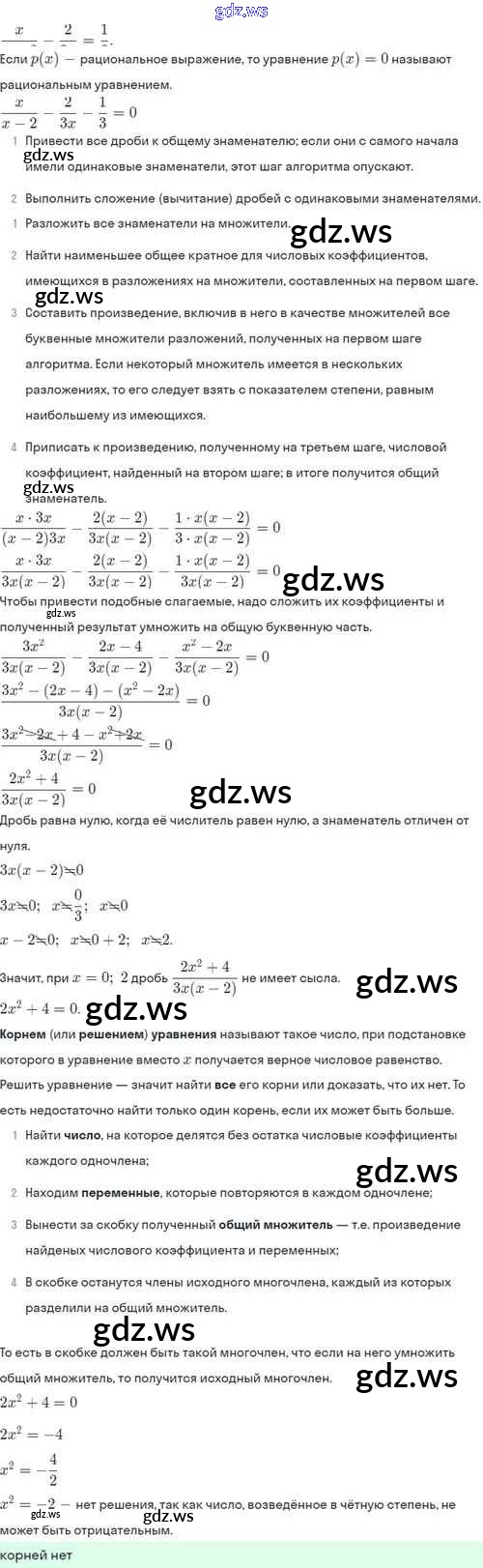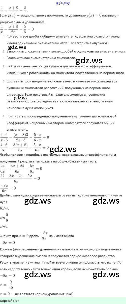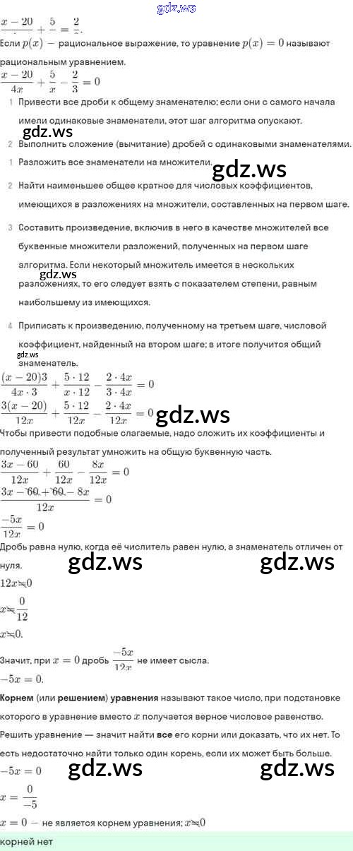 Готовый ответ §7. Первые представления о рациональных уравнениях - Алгебре 8 класс Мордкович Задачник Базовый уровень ФГОС