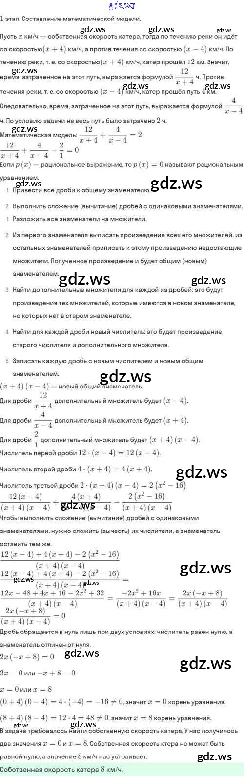 Готовый ответ §7. Первые представления о рациональных уравнениях - Алгебре 8 класс Мордкович Задачник Базовый уровень ФГОС
