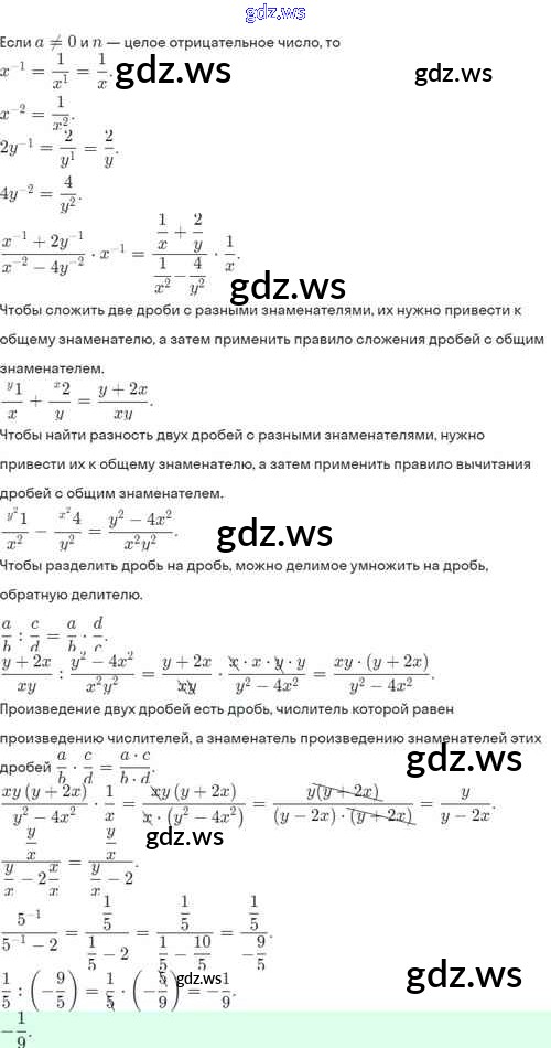 Готовый и полный ответ к §8. Степень с отрицательным целым показателем - Алгебре 8 класс Мордкович Задачник Базовый уровень ФГОС