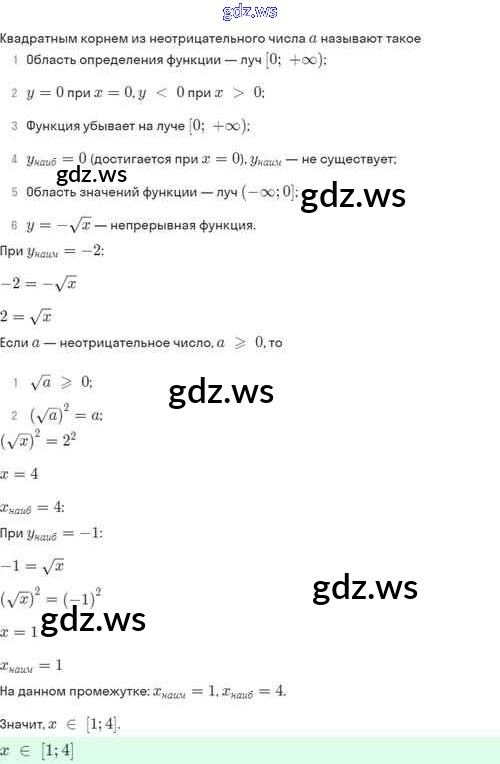 Готовый ответ §14. Функция y=√х, её свойства и график - Алгебре 8 класс Мордкович Задачник Базовый уровень ФГОС