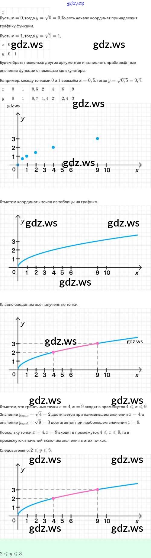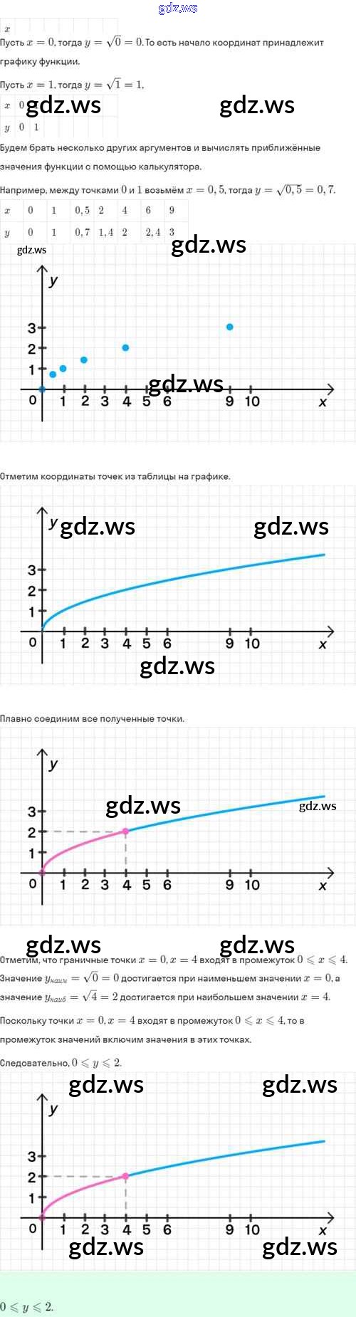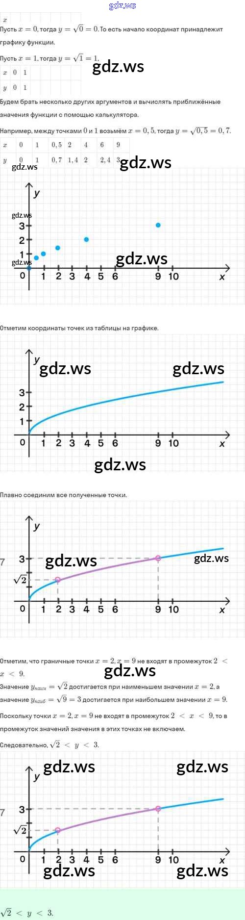 Готовый и полный ответ к §14. Функция y=√х, её свойства и график - Алгебре 8 класс Мордкович Задачник Базовый уровень ФГОС