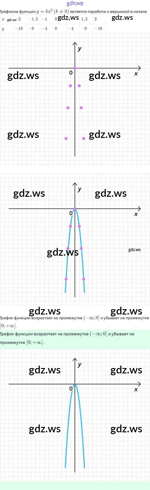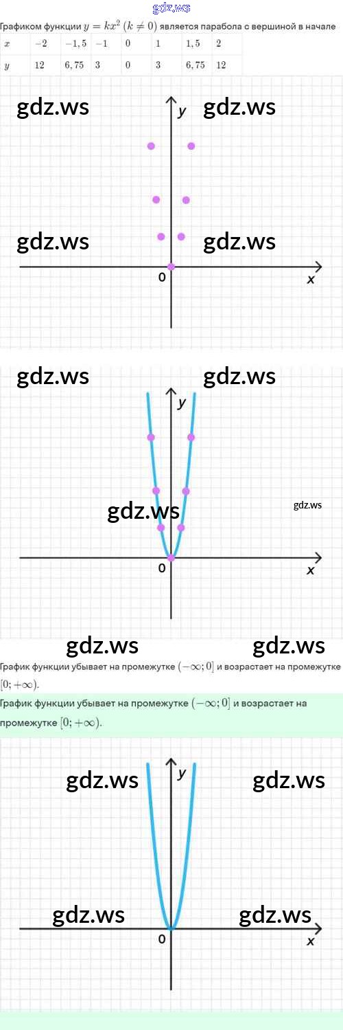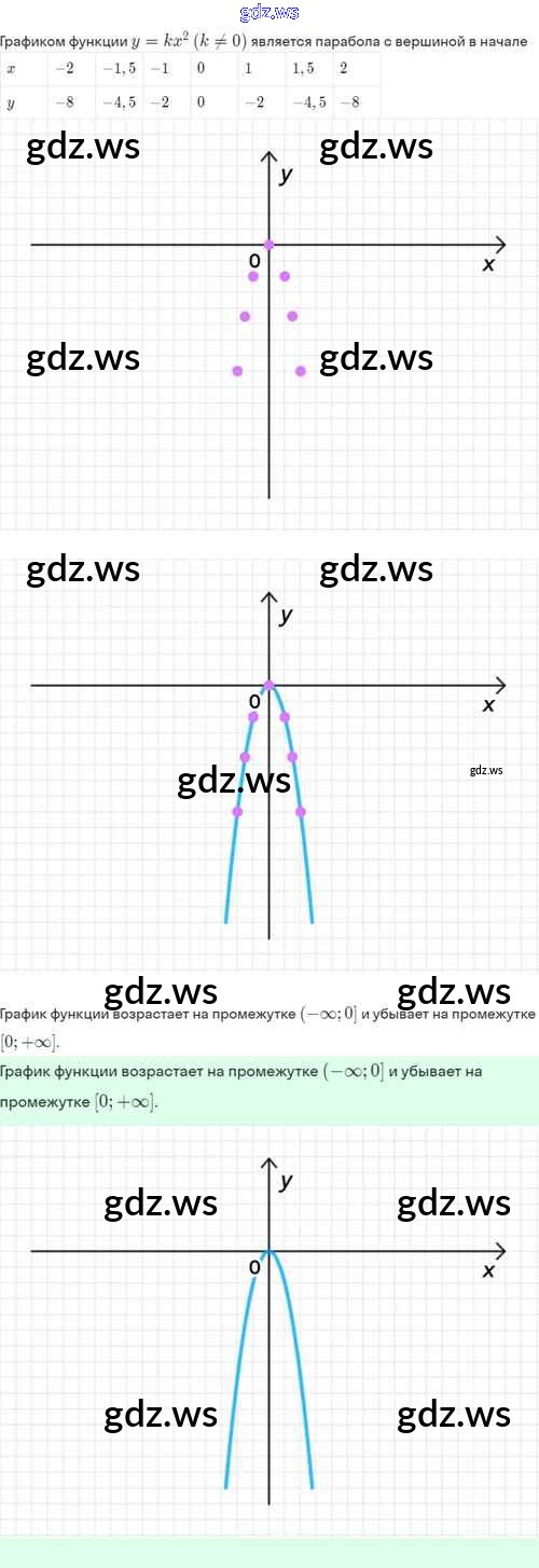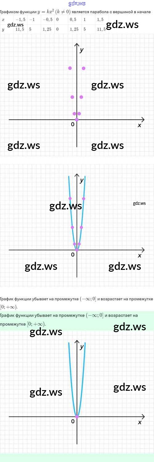 Готовый и полный ответ к §19. Функция y=kx², её свойства и график - Алгебре 8 класс Мордкович Задачник Базовый уровень ФГОС