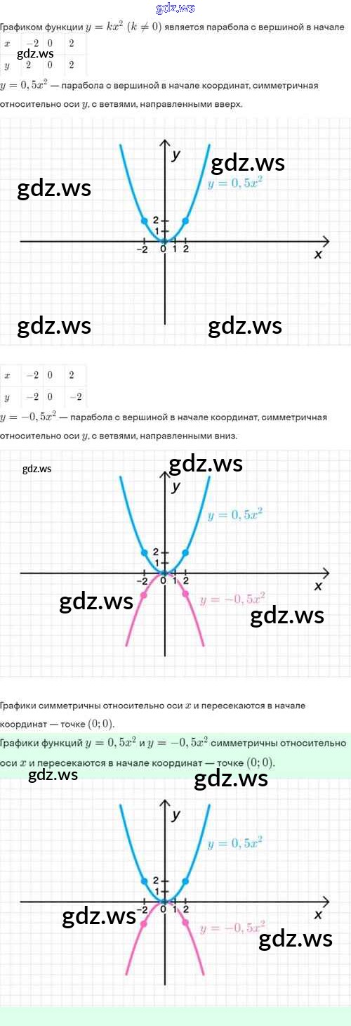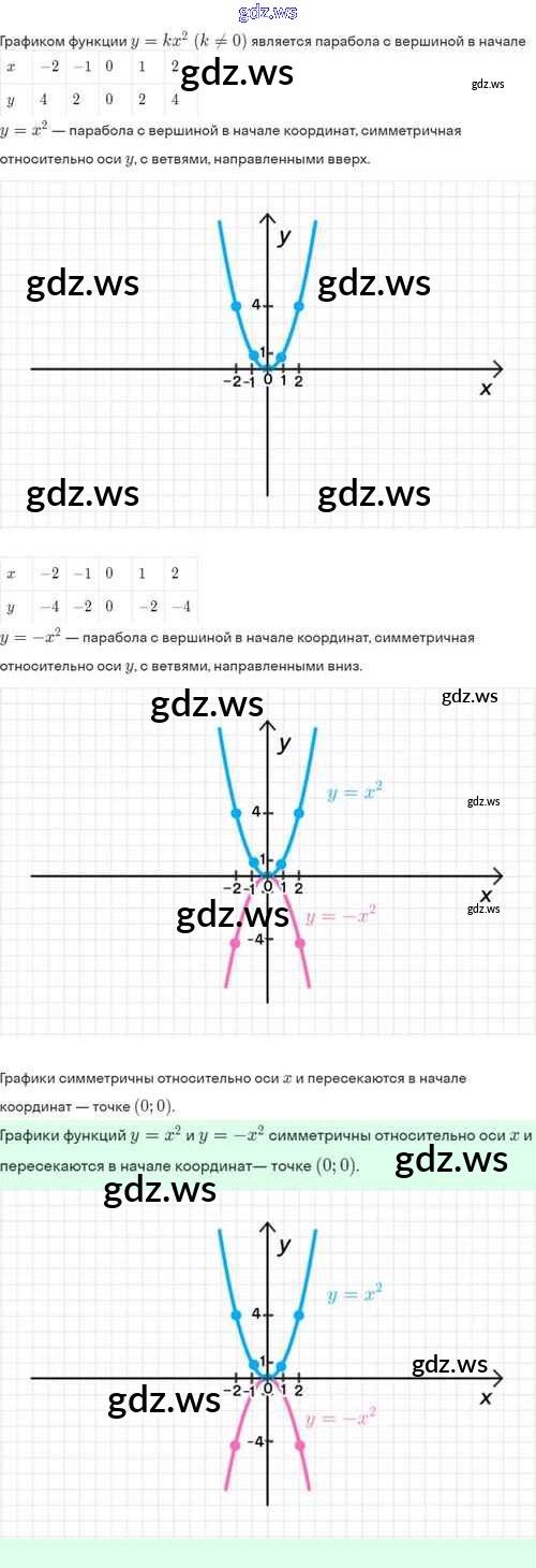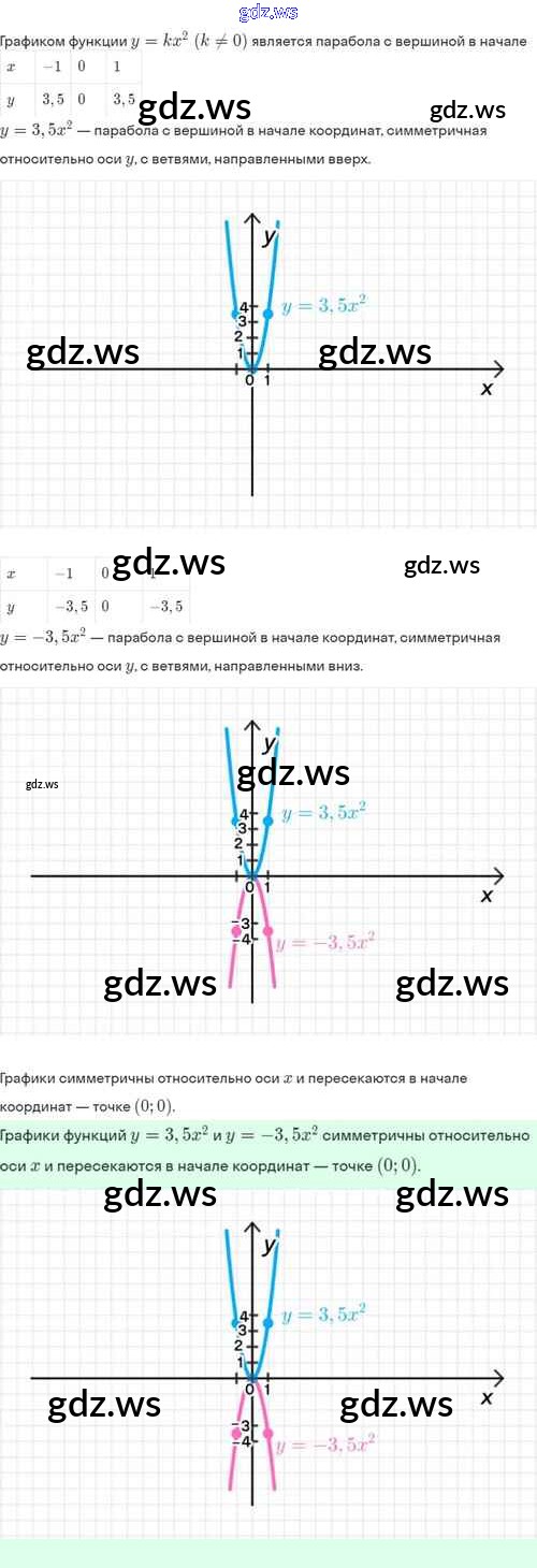 Готовый и полный ответ к §19. Функция y=kx², её свойства и график - Алгебре 8 класс Мордкович Задачник Базовый уровень ФГОС
