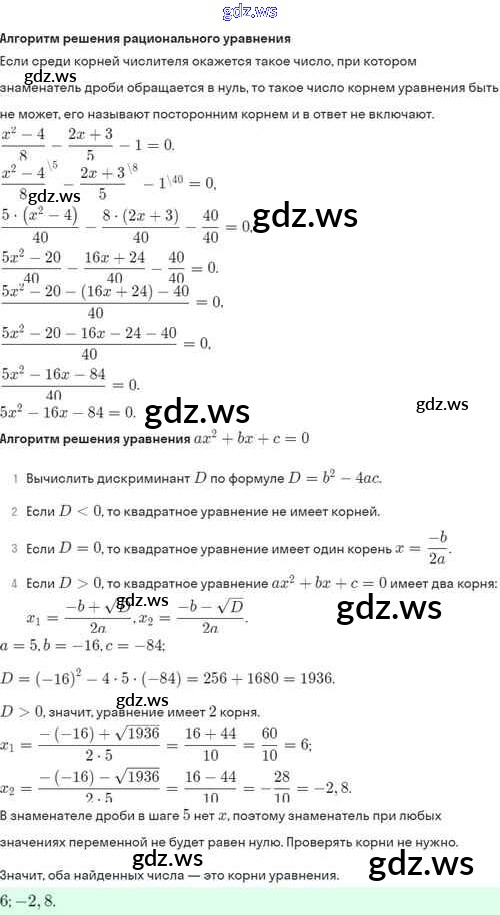 Готовый и полный ответ к §29. Рациональные уравнения - Алгебре 8 класс Мордкович Задачник Базовый уровень ФГОС