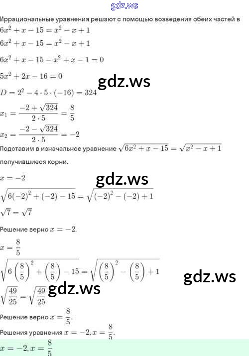 Готовый ответ §33. Иррациональные уравнения - Алгебре 8 класс Мордкович Задачник Базовый уровень ФГОС