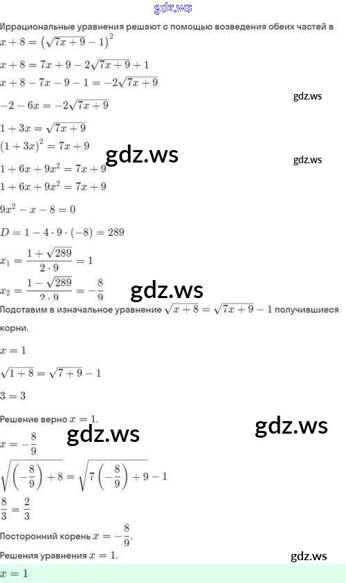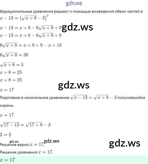 Готовый и полный ответ к §33. Иррациональные уравнения - Алгебре 8 класс Мордкович Задачник Базовый уровень ФГОС