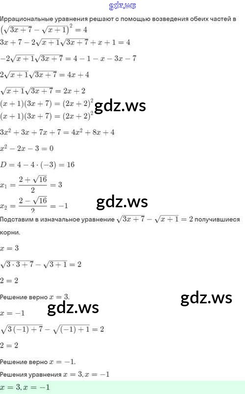 Готовый ответ §33. Иррациональные уравнения - Алгебре 8 класс Мордкович Задачник Базовый уровень ФГОС