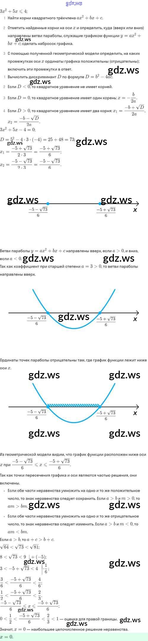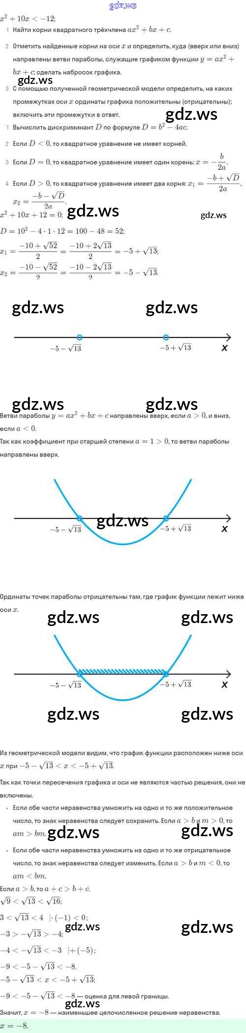 Готовый и полный ответ к §37. Решение квадратных неравенств - Алгебре 8 класс Мордкович Задачник Базовый уровень ФГОС