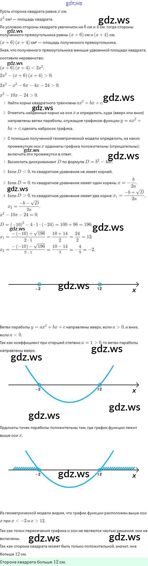 Готовый и полный ответ к §37. Решение квадратных неравенств - Алгебре 8 класс Мордкович Задачник Базовый уровень ФГОС