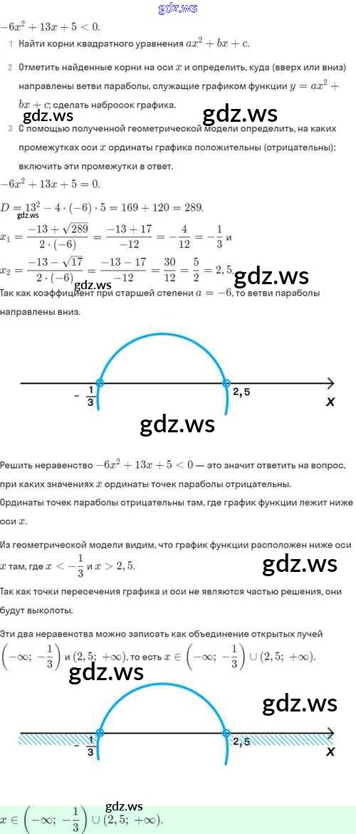 Готовый и полный ответ к §37. Решение квадратных неравенств - Алгебре 8 класс Мордкович Задачник Базовый уровень ФГОС